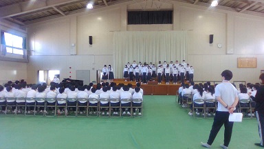 今日は、1年生の学年リハーサルが行われ、移動の仕方なども含めて練習を行いました。また、他学年は自分の教室やいろいろな部屋に分かれて、パート練習や合唱などの練習をしています。