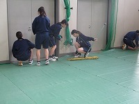 本日から、卒業式の練習が始まります。写真は、会場の体育館準備の様子です。