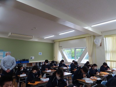 四日市YEF Charley(チャーリー)先生!ようこそ大池中学校へ!毎日楽しい英語授業をありがとう!これからもよろしくお願いします!いっぱいいっぱい大池中学校のこどもたちとの英語教育を通じた「あたたかなかかわり」をお願いします! 【写真は本日の1年4組の英語授業の様子から】 大池中学校の子どもたちの「わかる・できたと思える授業づくり」を大切にします。子どもたちが「英語に親しむ習慣づくり」と「YEFとの積極的なコミュニケーション」、「英語力の向上を目指して」四日市市YEF(四日市市英語指導員)の意義は大変大きいものがあります。今年度から大池中学校にYEFとして子どもたちの英語授業でかかわっていただいている「Sullivan Charles Orlando先生(大池中ではCharley先生<チャーリー先生>」の紹介を兼ねて、英語授業の様子を紹介します! 本日4月30日(木)1年4組の英語授業の様子から。子どもたちは、Charley先生との出会いを楽しみながらも、自己紹介のほぼ8割を英語文書だけで説明、質問、課題提示などを行う授業に、子どもたちは大変興味と関心を持って話に聞き入ったり、質問に対しての回答を一生懸命に考えたり、Charley先生のハイキングなどの趣味の話やアメリカでの生活のこと、岩手県での生活のこと、大好きなスパイシーチキンのこと、大好きなゲームの内容には目をキラキラさせながら夢中になって話を聴く場面もいっぱい!そして、英語授業担当の先生とともに授業をわかりやすくすすめてくれました。 そのあとは、子どもたちは、いま使える英単語を活用して、Charley先生に自分のことがしっかりと伝わるように、自己紹介文を一生懸命に考えながら作成していました。 Charley先生は日本が大好き。日本の食事が大好き。日本の文化が大好き。日本の生活が大好き。そして、子どもたちと関わることが大好きなアメリカ Boston州出身のとっても日本語が流ちょうな一生懸命な先生です。先週から今週にかけては、すべての学年・クラスにてそして、チャレンジルームにもThomas先生との出会いを中心としたアクティビティな活動を含めた授業を実践します。 3年生ではアクティビティな活動に加え、Charley先生が準備した教材を活用して、ペアワークとして「能動態・受動態にかかわる英作文の課題」にも子どもたちに寄り添いながら授業をすすめてくれています。これから、英語授業内はもちろんこと、大池中学校に常勤として勤務しているCharley先生と、もっともっとコミュニケーションをとって、生きた英語をいっぱい自分の中に取り入れてほしいと思います。 Charley先生これからもよろしくお願いします!