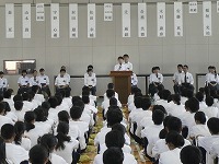 本日(10月1日・火)、生徒会選挙(生徒会役員については、1年間の任期です)に伴って、「立会演説会」が開催されました。