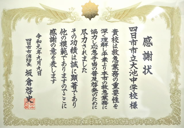 そこで本校に対し、”応急手当の普及啓発に尽力された”とのことで表彰していただきました。