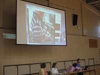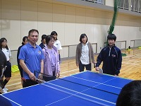 伊藤さん、黒田さんからは、実生活の経験を交えたお話がありました。また、稲毛さん、中野さん、安田さんも交えての「サウンドテーブルテニス」も体験させていただきました。生徒も楽しみながら参加できていました。ありがとうございました。