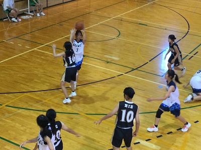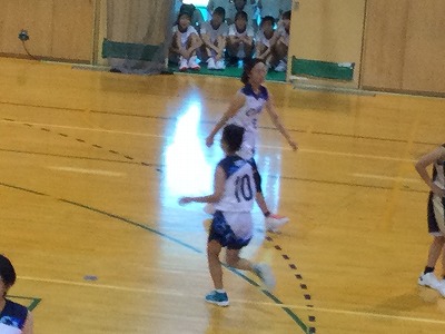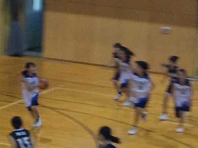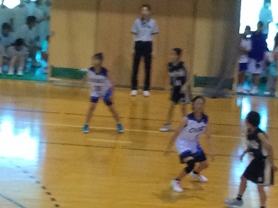 第1Qを4点差で大池中学校がリードをして第2Qに向かいます。試合の中で2年生だけではなく、中学校に入学してまだバスケットボールを半年しか経験をしていない1年生も先輩とともに一生懸命に頑張ります。1対1の場面で簡単に抜かれてしまうような場面や、パスミス、キャッチミスなどがあってもチームみんなでカバーし合います。一番良かったと思えるプレーは、2年生も1年生も綺麗で上手なプレーはなかなかできなくても、転がっているボールにカラだごと飛びついたり、相手選手とボールの奪い合いになっても負けなかったり・・・。そんな一生懸命なプレーがすごく印象に残っていますし、一番ナイスプレーだったと思います。