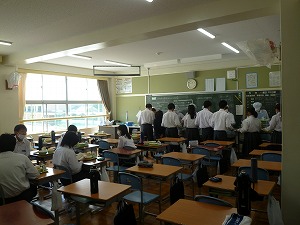 給食スタート時に比(くら)べると、生徒同士の声がよく聞こえてくるようになっています。学級の雰囲気(ふんいき)にも、柔(やわ)らかさがみられるようになってきたでしょうか。