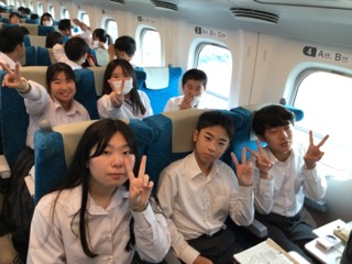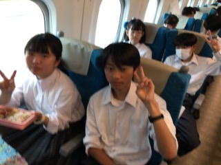 大池中学校3年生は、ずっと元気です!トランプで楽しんでいる班もあり、たみんなそれぞれの新幹線タイムを楽しんでいます!