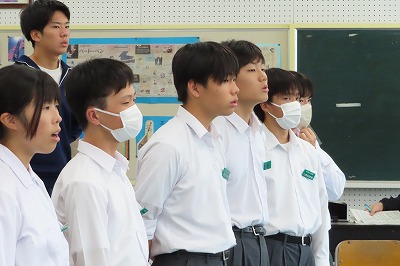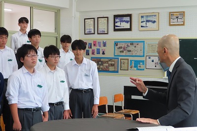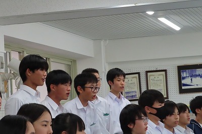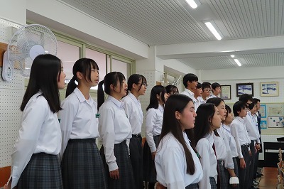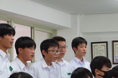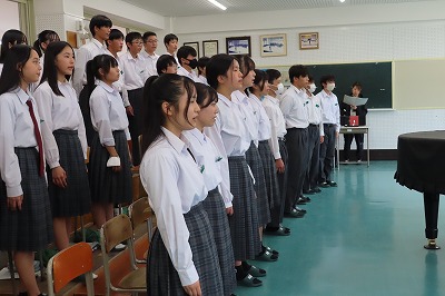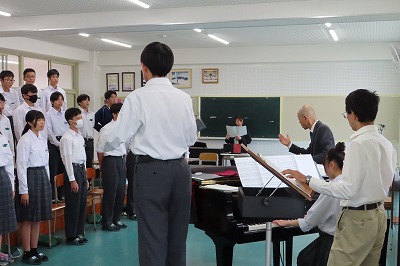 3年生のすべてのクラスが、本日までに一海先生の合唱指導を受けました。合唱の技術はもちろんのこと、合唱に取り組む姿勢や合唱曲の情景を考えながらうたうことの大切さを学んでくれたと思います。2日間にわたる合唱指導、本当にありがとうございました。文化祭合唱コンクール当日は、一海先生に合唱審査をお願いしました。あらためてよろしくお願いいたします。