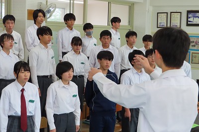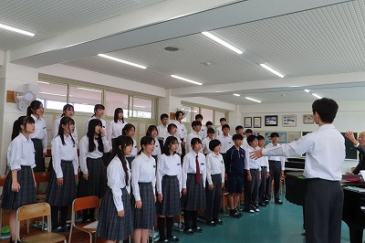 【次の写真は5限目の3年3組の一海先生の合唱指導の様子から】