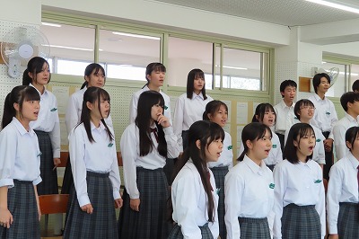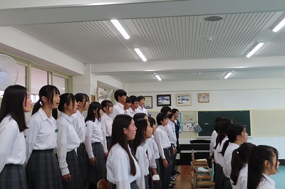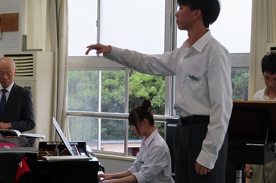 【次の写真は4限目の3年5組の一海先生の合唱指導の様子から】