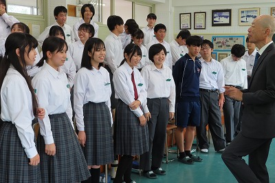 何よりも嬉しいのが、一海先生が大池中学校の卒業生であることです。一海先生も母校である大池中学校で合唱指導ができることを大変喜んでいただきました。一生懸命で大切なかわいい後輩たちに、1限目から5限目まで休憩なく合唱指導を熱く、そして丁寧に、そして笑顔であたたかくカラダ全体を使ってご指導をいただきました。この授業の様子は写真をご覧いただいてもよくご理解いただけると思います。