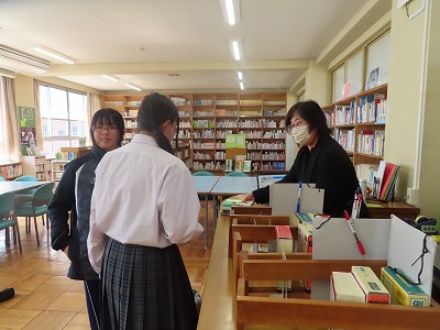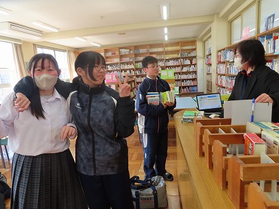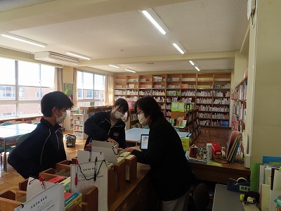 図書委員会のみなさんには、読書活動推進活動を柱に、全校生徒が「本に親しみ、本を手に取りやすい環境」をつくってくれたり、図書室を利用しやすい環境をつくってきてくれました。毎日のお昼休みの貸し出しを図書委員のみなさんが担当してくれました。また、月1回の委員会活動では、図書室の本の整理整頓をしてくれたり、学級文庫の本を選定してくれたりという活動を1年間かけて継続し積み重ねてきてくれました。図書委員会のみなさん1年間本当にありがとうございました!