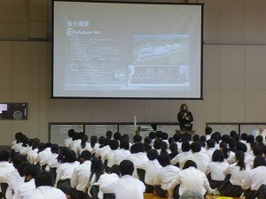 2年生が、いなべ市をはじめ国内外に工場等を展開されている『株式会社 フジ技研』様から役員の方をお招(まね)きして職業講演会を行いました。