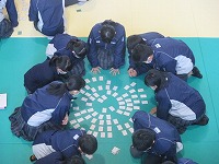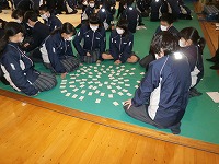 本日(21日・月)、1年生が武道場で5,6限を利用して「百人一首大会」を開催しました。
