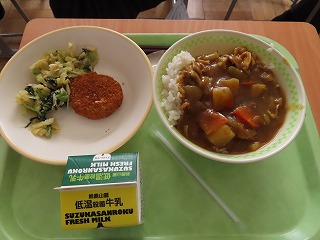先週1月30日(金)の給食の時間。給食メニューは「カレーライス」。1月最後の給食でした。3年生1組と2組では、本校栄養教諭の井原先生(橋北中学校と兼務)がわかりやすい視覚教材を活用しての「食育講座」を実施していただきました。給食の「カレーライス」を美味しくいただきながら、3年生1組・2組のこどもたちは、みんな井原先生の講義にしっかりと聴く姿勢を大切にしながら楽しくためになる給食の時間を過ごしています。