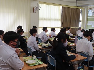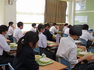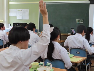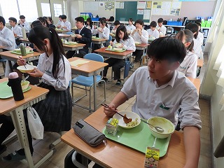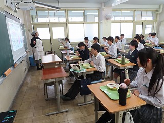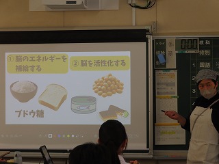 (3年1組2組)30日 栄養教諭の給食時の食育講座。美味しく学ぶ大切な時間
