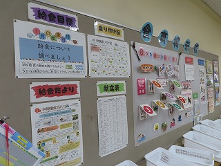 子どもたちは、毎日の美味しい給食が楽しみです。メニューもこのように工夫されながら栄養バランスを考えて献立を決めてもらっていること、給食にもこれだけ食育としての学びがあることを知ること・考えること・味わうこと・食を楽しむことを井原先生から学んでいます。