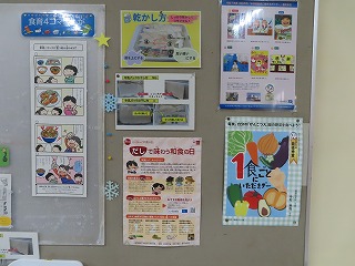 また、井原先生は大池中学校の生徒昇降口前に掲示板として活用している『食育コーナーの掲示板』に、毎月わかりやすく、見やすく、楽しく、学びができる内容を月ごとに献立テーマに合わせて作成してくれています。次の写真は1月の食育です。井原先生の丁寧にまとめていただく掲示板は、大池中学校になくてなならない大切な掲示板となっています。2月の掲示板も楽しみです!