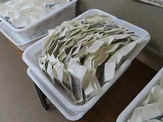 最後は、すべてのクラスの「ミルクパック担当」の係のみなさんが、毎日の給食後に校舎北館の1階の手洗い場や、生徒昇降口前にある手洗い場等で、いつも丁寧にミルクパックを水で洗い流し、とってもキレイにかごに並べて乾かしてくれています。この作業は地道で根気のいる作業ですが、大池中学校の子どもたちは、責任感を持って毎日毎日担当のかかわりの子どもたちが分担をしながら取り組んでくれています。みんなありがとう!特に今は寒さも厳しく、水もすごく冷たいけど、係のみなさんは嫌な顔一つもしないで、みんなで頑張って取り組んでいます。係のみなさんに本当に感謝です!ありがとう!
