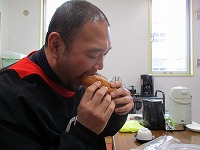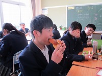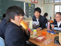昼食時間の様子です。今日は、人気のある「揚げパン」でした。