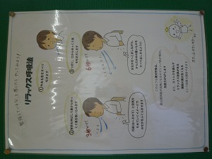 緊張(きんちょう)したときなどに行う呼吸法(こきゅうほう)が、スクールカウンセラーさんから紹介(しょうかい)されています。廊下(ろうか)の掲示板(けいじばん)に貼(は)られていますので、試(ため)してみてはどうでしょうか。