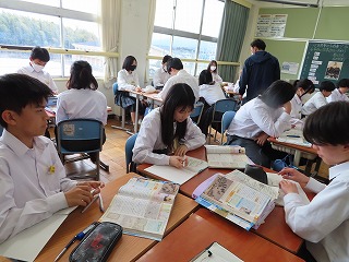 ④班ごとで考え、まとめた意見を発表し、各班から出てきた意見や考えを共有します。