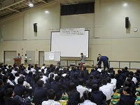 昨年に引き続き、今年度も「徳島県エンタメ集団(友輝)」の中倉茂樹さん・塩見正樹さんのお二人に来校していただきました。