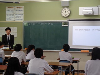 四日市市教育委員会人権・同和教育課から指導主事先生を指導・助言者として来校をいただきました。指導主事には、授業を参観いただくだけではなく、人権学習を2年生で進めていくための事前指導等に助言をいただきました。