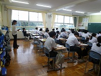 今日は、三重北小学校の先生が研修(けんしゅう)の一つとして、中学校のようすを学(まな)びに来校されました。