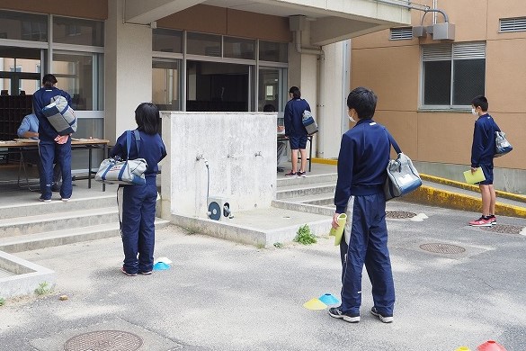 3年生の学習教材受け取りの様子です。
