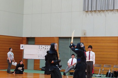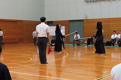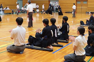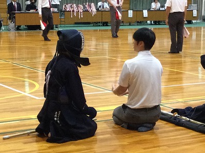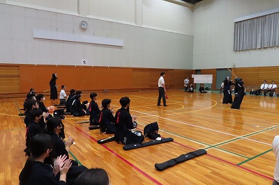 剣道部男子は、1回戦の三重平中学校との対戦を制し勝ち上がりました。2回戦は保々中学校が対戦相手です。団体戦で出場した選手は応援する側から見ていても、緊張がしっかりと伝わってきますが、目の前の1本にこだわり続け、集中して頑張り、一本を着実に積みあがてきました。その1本の積み重ねで、しっかりと2回戦も勝ち上がりました。