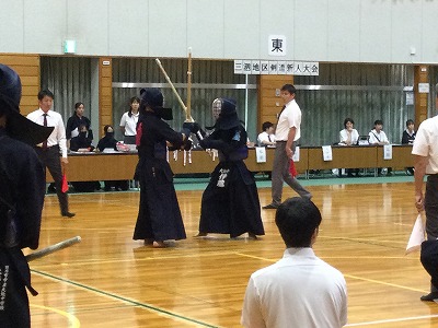 そして、3回戦準決勝の相手は、強豪菰野中学校です。積極的に攻め続け、ひたむきに1本を奪いに行く剣道を継続します。先鋒から次鋒へ、中堅へそして副将、大将へと一人一人の頑張りがしっかりとつながっていきます。本当に互角の戦いが続きます。