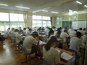 3年生は、夏休み後の力試(ちからだめ)しとして実力テストを実施(じっし)しています。この結果(けっか)は、これからの学習の取組(とりくみ)につなげていってほしいところです。