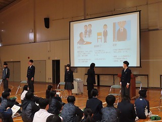 この講座は、第3学年の受験指導の一環として、身だしなみや面接、スピーチ、自己PRなど、試験に臨む際に必要なマナーを学ぶことを目的としています。