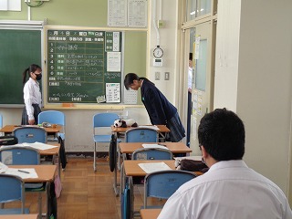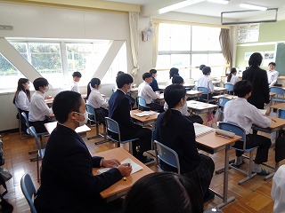 2限目から6限目は、篠田様に3年生の各クラスに入っていただき、実際に面接の練習をしました。