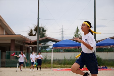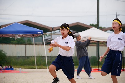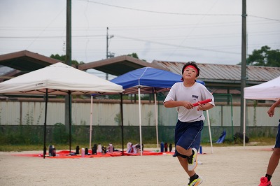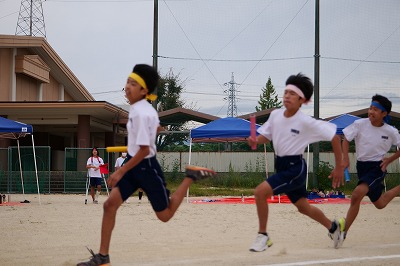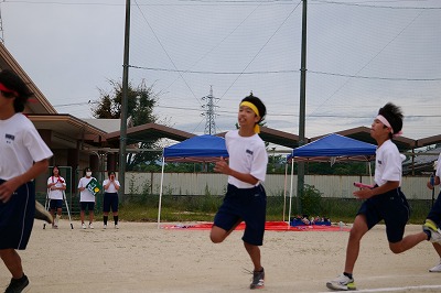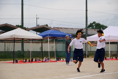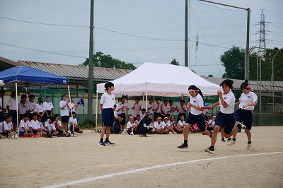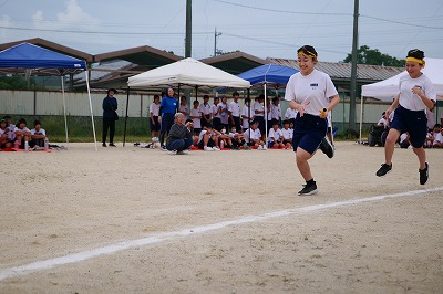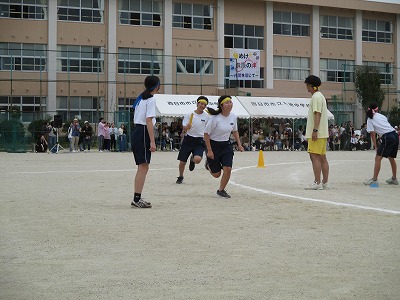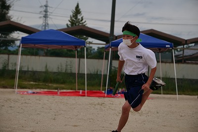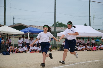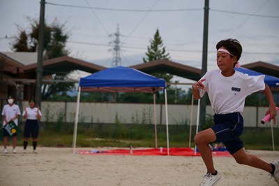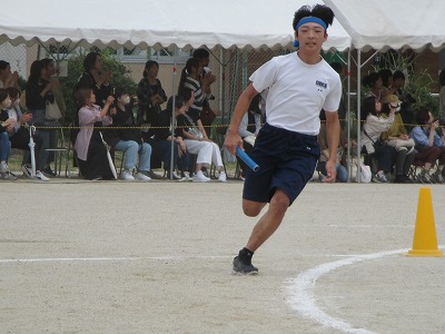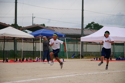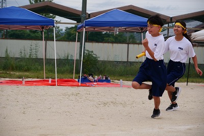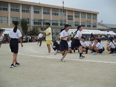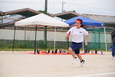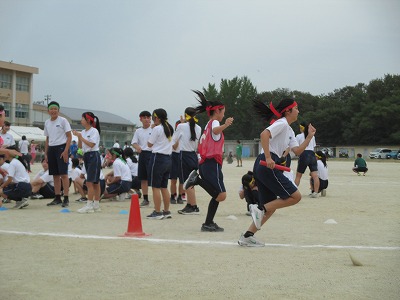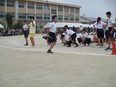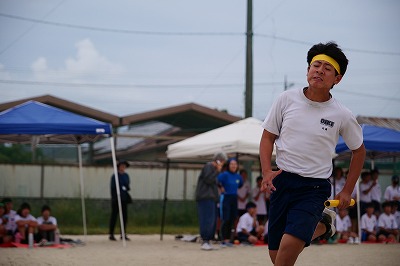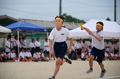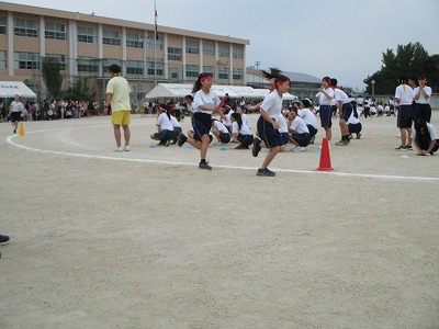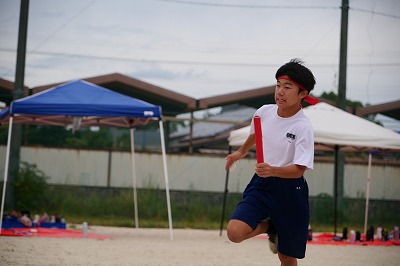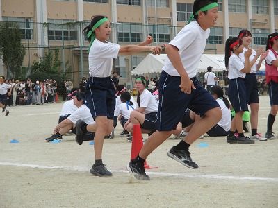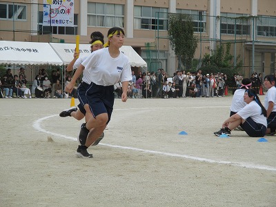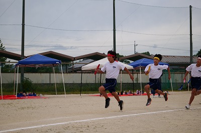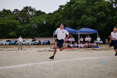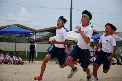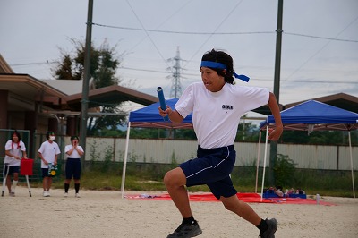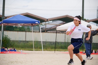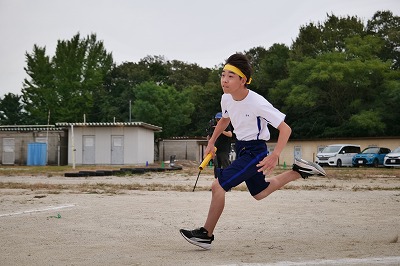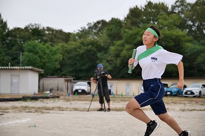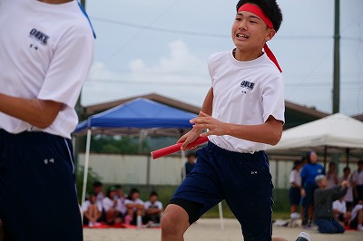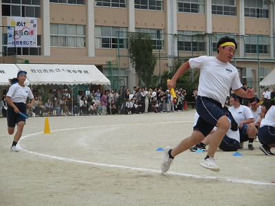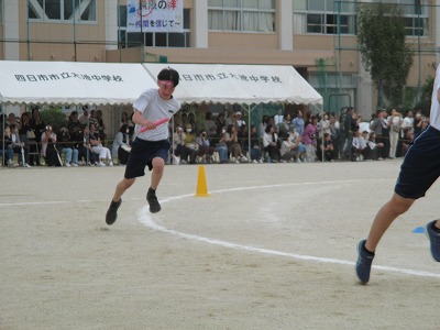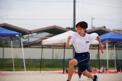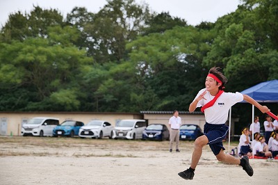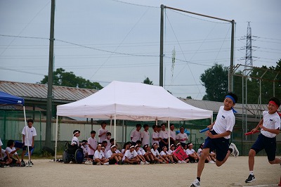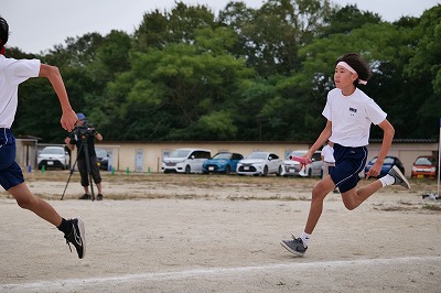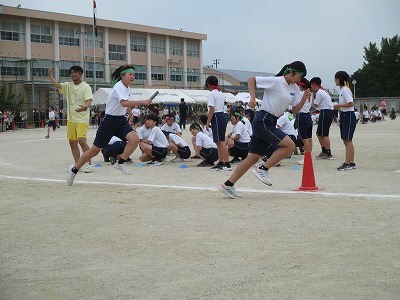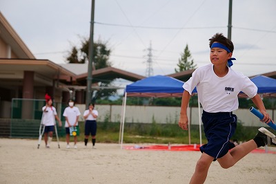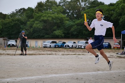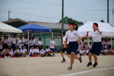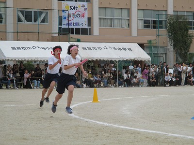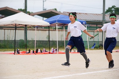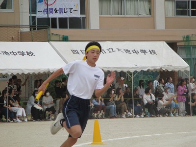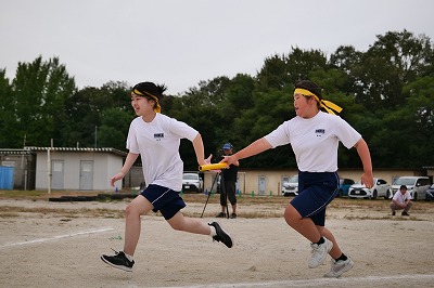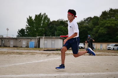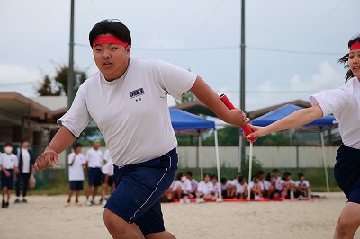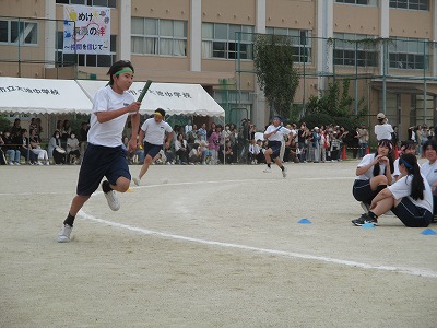 大池中学校体育祭のメイン競技種目とi言っていいほど、全校で力いっぱいに頑張り、クラスの思いをバトンに込めてつないでいくバトン。