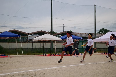 【1年生の全員リレー 一生懸命に頑張った子どもたち様子から】