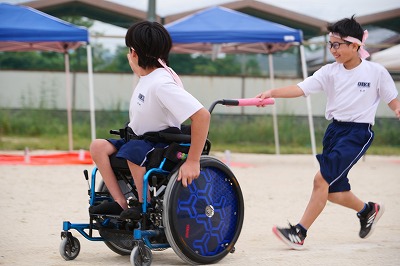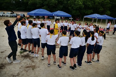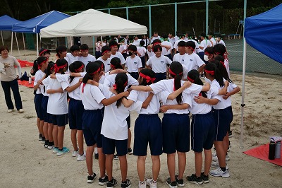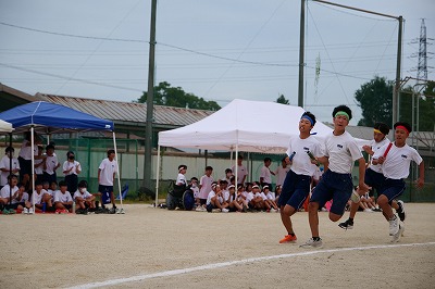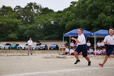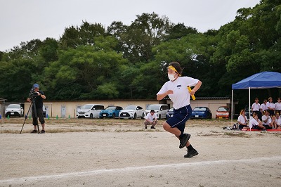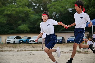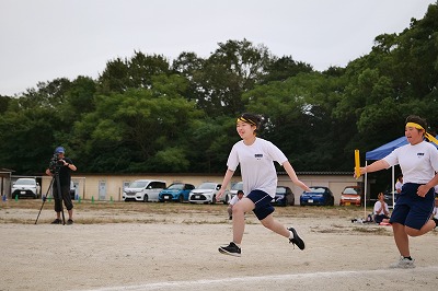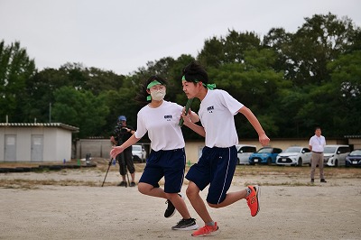 全員リレーに、体育祭に出場できなかったクラスの仲間の思いも一緒に、みんなみんなを応援し、その応援を背に受けて、みんなが全力でバトンをつなぎました。バトンがうまくつながらなかったり、接触してして転倒してしまったり、バトンを落としてしまったり・・・でも、そのようなことも、クラスのみんなが笑顔で「大丈夫大丈夫!」、「ドンマイやよ!」、「まだいける!」などの声を掛け合って、みんなでみんなをカバーしながら頑張った全員リレー。着順は出て、順位も決定しましたことも大切なことですが、それ以上に大切なことは、『みんながチームのために、チームがみんなのために全力でバトンを最後までつないだこと』。