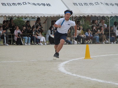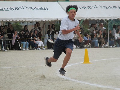そして、先輩の頑張る姿を一生懸命に目で追い、一生懸命に応援する後輩。そんな姿にも、大池中学校が目指したい学校づくりである、「先輩の姿から学べる学校」があります。言葉ではなく、子どもたち一人一人の思いと行動が、「先輩の姿から学べる学校づくり」の大切な基盤となっていくことを感じました。本当に心が動かされる、そして、これからの大池中学校が目指す方向性を示してくれた全力の姿でした。
