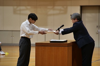 本来は、表彰を授与された皆さんに一人一人に表彰をお渡しできれば一番よいのですが、時間の都合で代表のみなさんへの表彰伝達とさせていただきました。体育館は、表彰をさせるみなさんへの大きな拍手でいっぱいです!本当におめでとうございます!