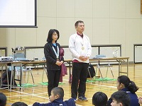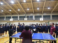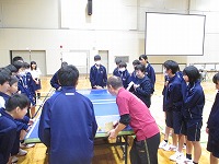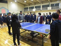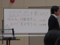 本日(11月26日・火)、1年生は「ゲストティーチャー」をお招きして、「SSピンポン」を一緒に体験させていただきました。