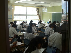 2年生の国語科の授業のようすです。学習用タブレットを活用して学習しています。