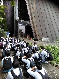 各学級がテーマ別に学習を行います。このクラスは、夢の島公園内にある第五福竜丸展示館に来ました。