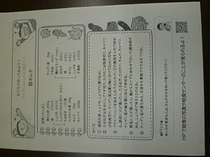生徒昇降口内にある食育関係(しょくいくかんけい)の掲示板(けいじばん)に、設置(せっち)されているものです。持ち帰り可能(かのう)なプリントです。これは『豚キムチ』のレシピでした。興味(きょうみ)のある人は、おうちの人と取り組んでみては…。