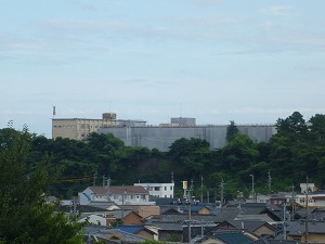 近くから撮影(さつえい)することができませんでした。市内にある高等学校です。丘の上に建てられているようです。右側の校舎は、改修工事中(かいしゅうこうじちゅう)なのかシートがかけられていました。