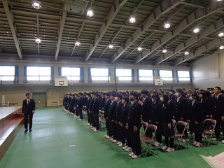卒業式前日となった今日3月5日(木)の3限目は、卒業を控える3年生と、これからの大池中学校のリーダーであり、要となる2年生との最後の卒業式合同リハーサルを実施しました。