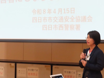 1年生を対象として、本日4月15日(水)6限目は「総合」の時間として、『子どもたちの安心・安全を守る交通安全教室』を体育館にて実施しました。講師は、四日市市交通安全協議会、四日市西警察署交通課と四日市市役所都市整備部道路管理課から。【本日の交通安全教室の大きな目的は・・・】
