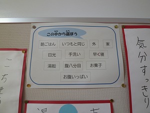 以前(いぜん)にもお知らせしましたが、保健室前の掲示板(けいじばん)には健康に関する情報(じょうほう)が掲示されています。
