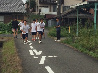 今年度の大池中学校駅伝部を支え、引っ張っていくのが体育科の先生と合わせて、8組の担任の先生も一緒に頑張ってくれています。中心で指導をしていただける先生は、大学では4年間箱根駅伝を目指したトップアスリートです。チーム目標を6位入賞として、三重県大会出場を目指します。しかし、チームメンバーの子どもたちには、無理なくペースを設定し、走るフォームを大切にして取り組んでいます。指導をしていただける先生と積極的に参加してくれたメンバーが一緒になって頑張って取り組んでいます。子どもたちはその期待に応えるように一生懸命に取り組んでくれています。