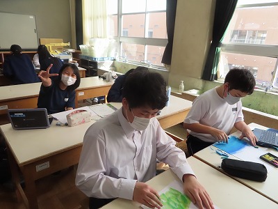 今週末4月17日(金)の『部活動集会(部活動正式入部)』にむけて、大池中学校では1年生の部活動体験がはじまっています。本日4月14日(火)は校舎北館の教室で取り組んでいる『家庭部』と『美術部』の様子を紹介します。