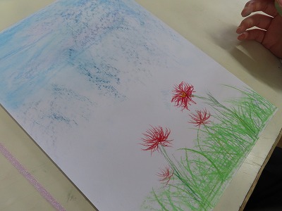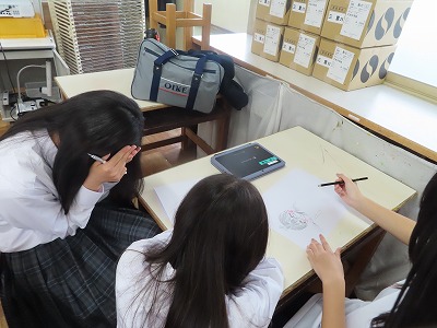 このように自分らしく取り組む2年生・3年生の先輩たちとともに、顧問の先生方の指導を受けながら、1年生の子どもたちは、自分が興味を持って取り組みたい・描きたい・学びたい物や事に一生懸命に取り組むステキな体験をしていました。1年生ですが、あたたかくやさしい雰囲気の風景画や、笑顔がいっぱい出てきそうなイラスト、コツコツと取り組む手芸など・・・家庭部では3年生の先輩から丁寧に優しく1年生の後輩に手芸を教えてくれてる場面があり、とってもあたたかく、嬉しく感じました。みんな楽しそうに、あたたかな雰囲気の中で取り組む姿が印象的でした。