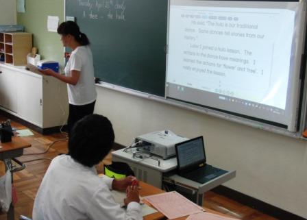 また、各教科でICT機器の活用も重視します。英語の授業でもデジタル教科書を使用しています。